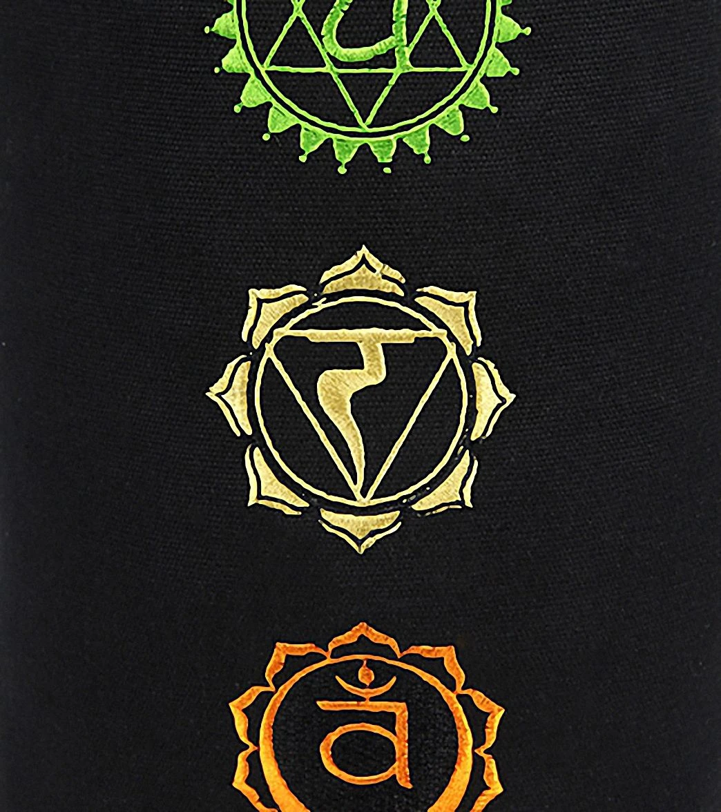 - Embroidered with seven chakra symbols in different colors.