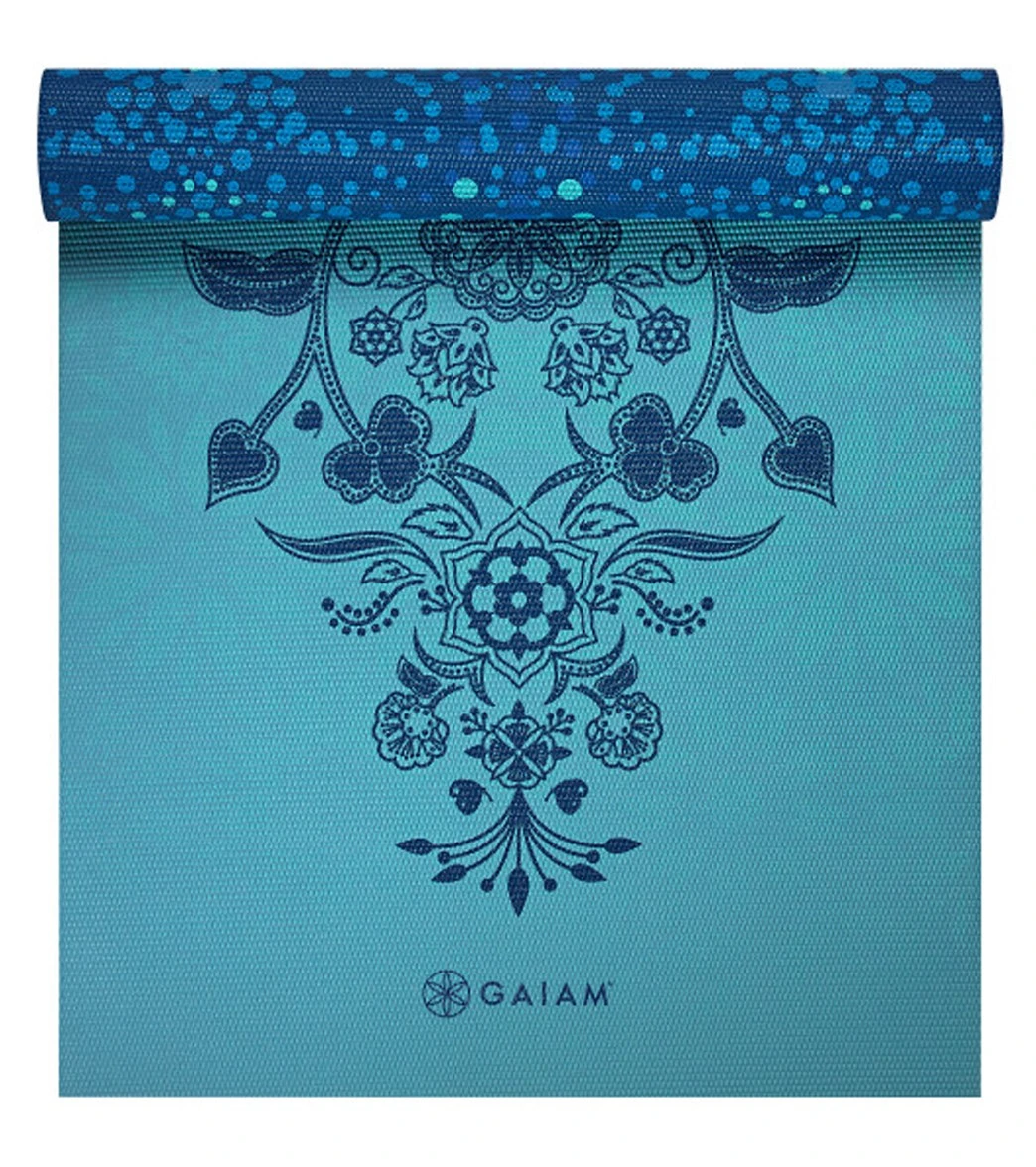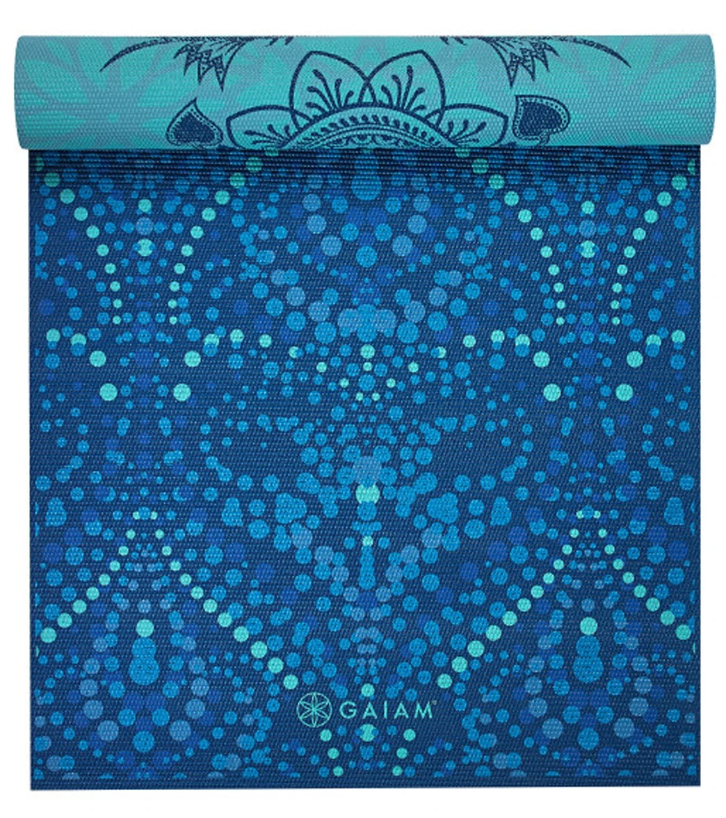 Twice the mat means more opportunities to practice vinyasa. This Gaiam Premium Reversible Yoga Mat 5mm comes in a calming bohemium take on classic patterns o you can pick and choose what type of practice you want for the day. Made with 5mm of premium cushioning, this yoga mat comes in a textured, no-slip design so you can stay supported throughout class.