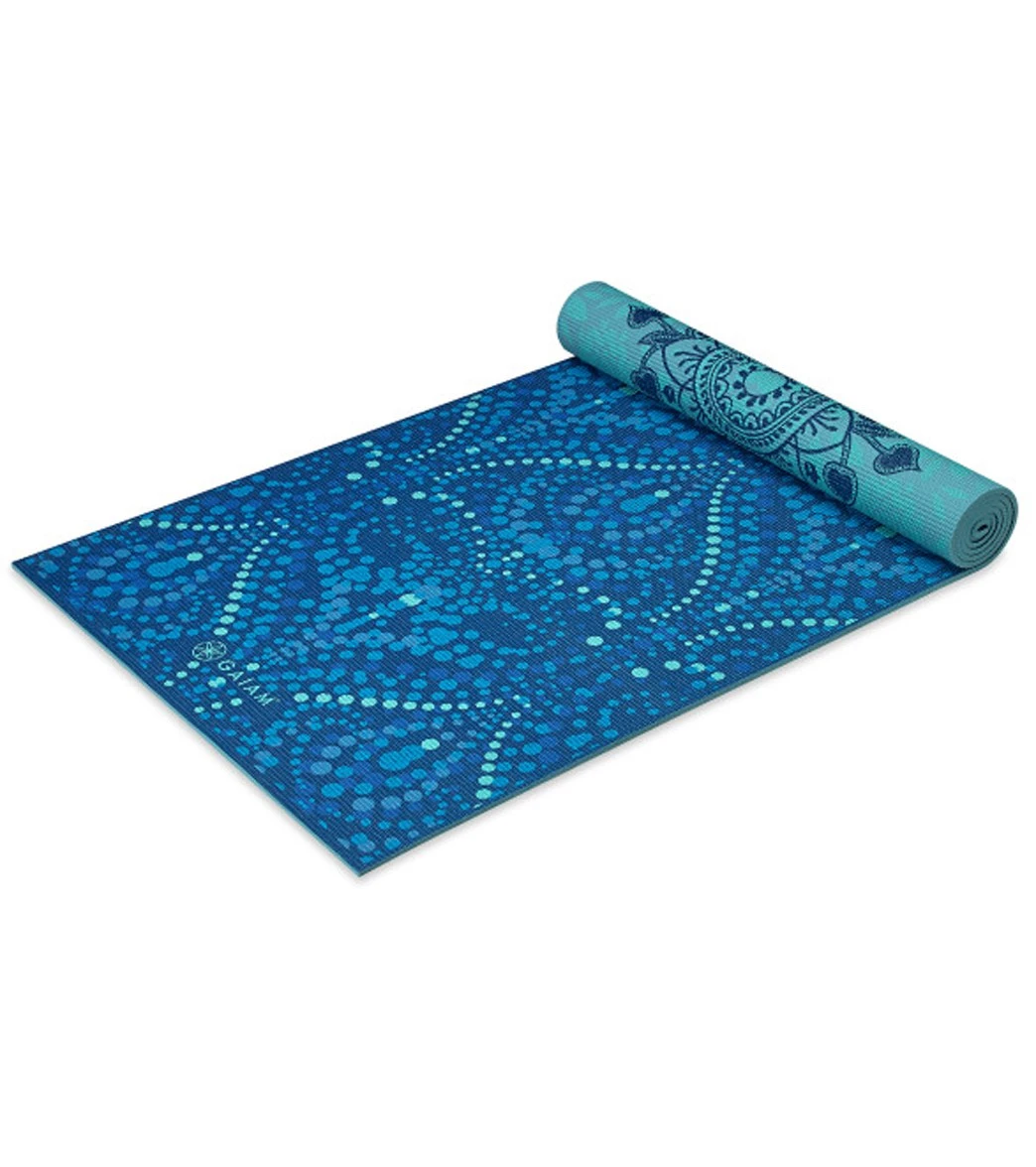 Twice the mat means more opportunities to practice vinyasa. This Gaiam Premium Reversible Yoga Mat 5mm comes in a calming bohemium take on classic patterns o you can pick and choose what type of practice you want for the day. Made with 5mm of premium cushioning, this yoga mat comes in a textured, no-slip design so you can stay supported throughout class.