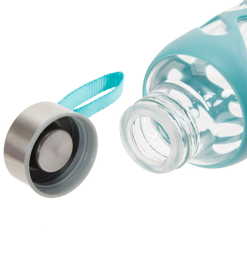 You can’t go wrong with this Gaiam Viridian Sure Grip Glass Water Bottle 20oz. Fitted with colorful silicone sleeves to enhance your hold and prevent breakage, each bottle has a leak-proof stainless-steel cap with a convenient carry strap for on-the-go use.